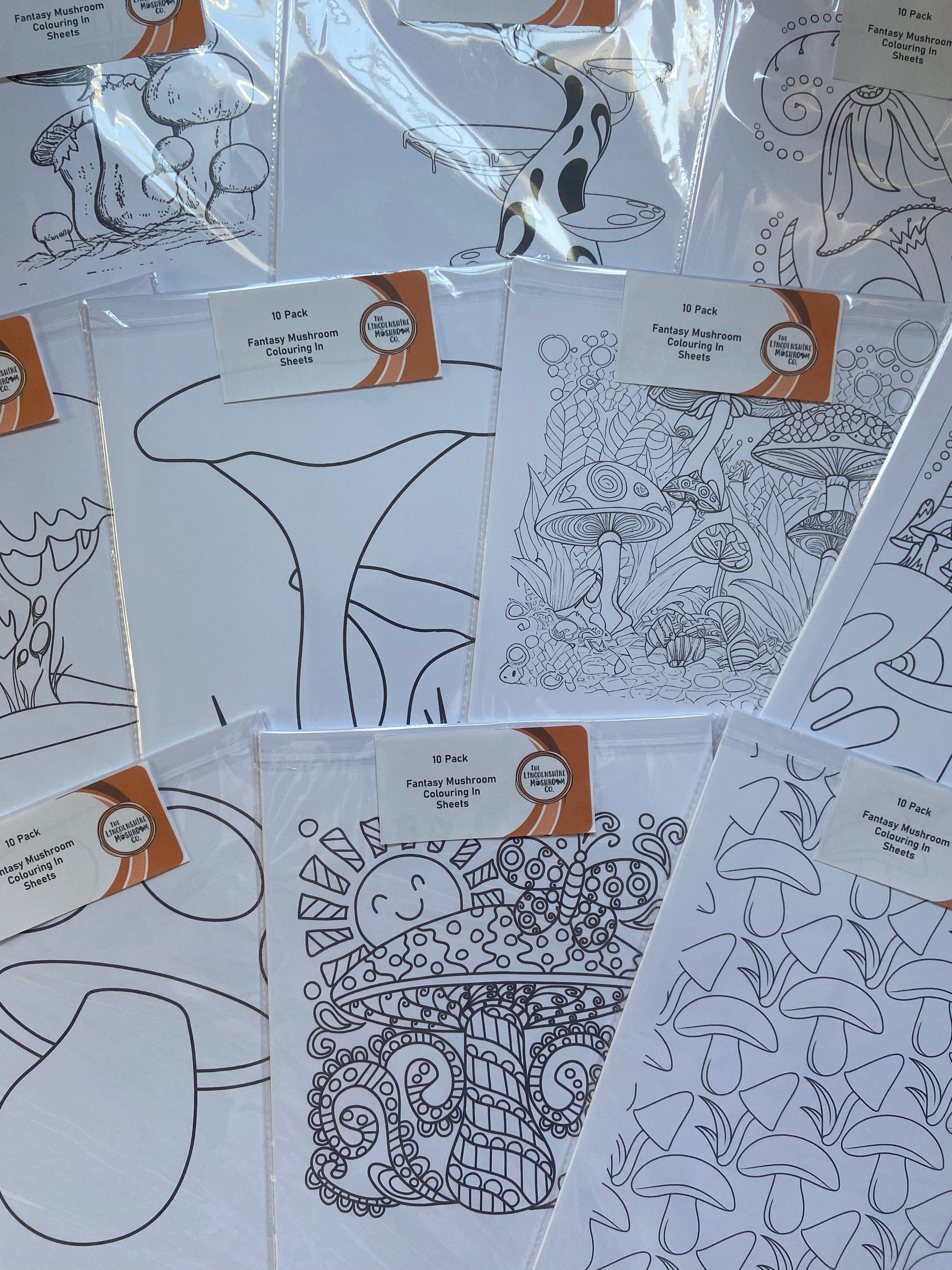 10 Pack Fantasy Mushroom Colouring In Sheets