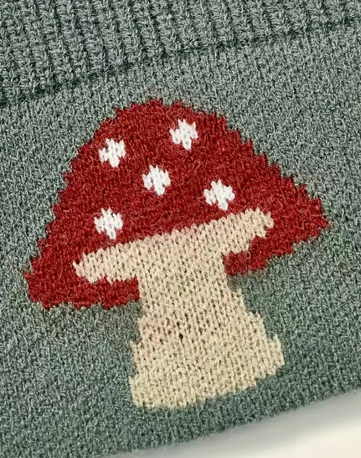 Knitted Mushroom Print Sage Green Halter Top Size 10-14