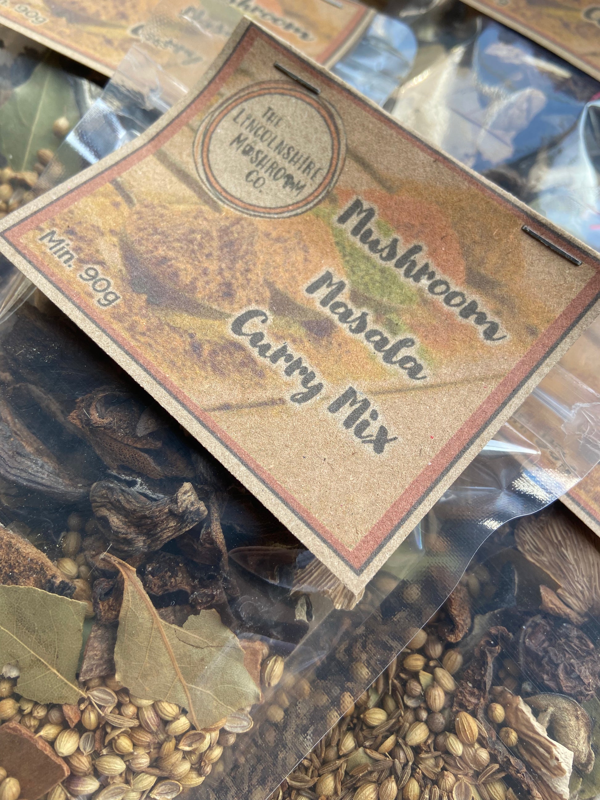 Coriander, Cumin, Cinnamon, Black Pepper, Bay Leaves, Cardamon, Nutmeg, Cloves, Star Aniseed. White Oyster, Grey Oyster, Boletus, Shiitake, Porcini, Slippery Jack, Jelly Ear Mushrooms