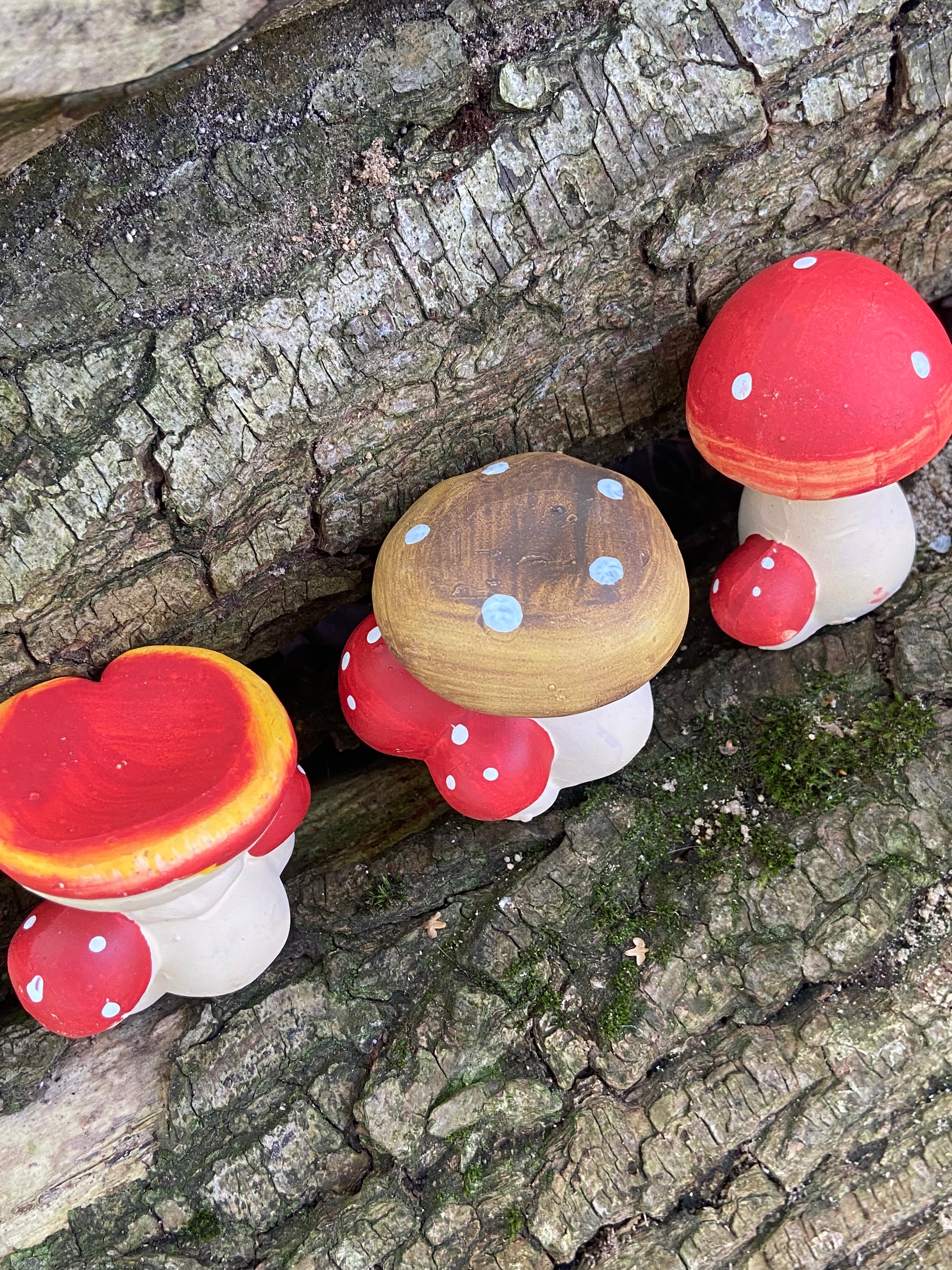 Set of 3 Medium Ceramic indoor/outdoor Mushroom Ornaments